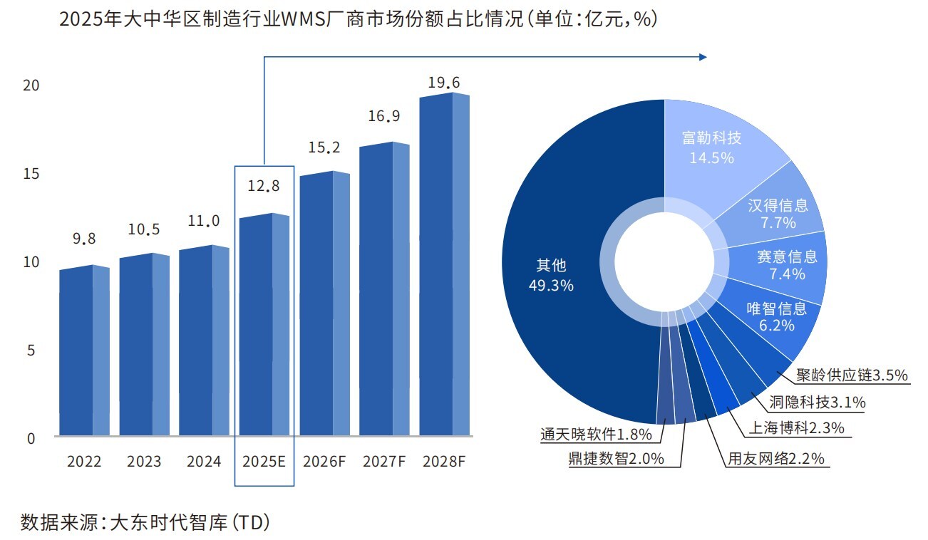 2025年大中华区制造行业WMS市场规模预计达12.8亿元,同比增长16.9%