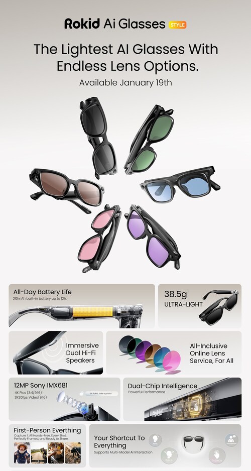 (全球TMT2026年1月20日讯)Rokid宣布,Rokid Ai Glasses Style正式上市销售。该产品此前已在2026年国际消费电子展(CES)全球首发。